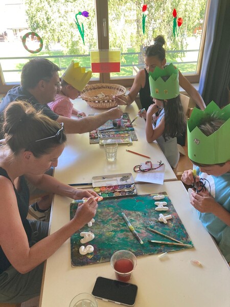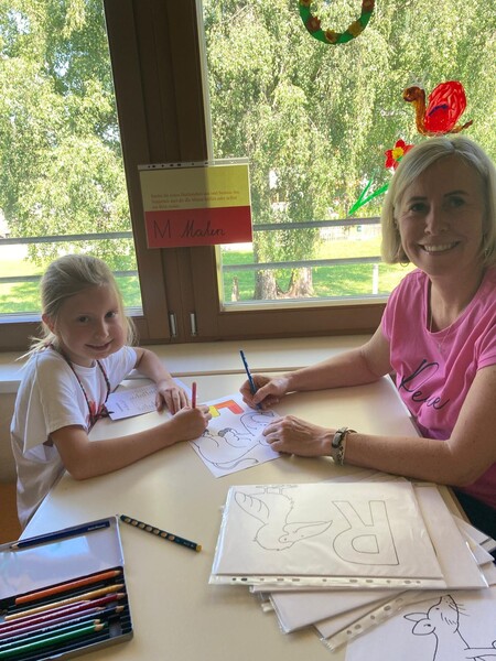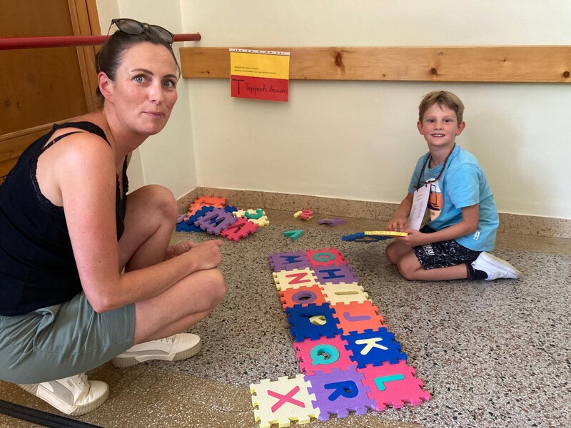 Eifrig halfen die Kinder bei der Durchführung ihres Festes mit und wir bauten zu jedem Buchstaben eine Station auf, die sie gemeinsam mit ihrer Mama oder ihrem Papa bearbeiteten.
